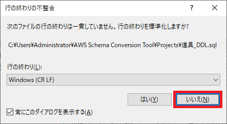 拡張子 .sql が割り当てられているせいで SSMS で開こうとするが、不要なので拒否する。