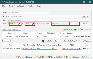 5-5-2. TCP の疎通を確認する。(Windows の Packet Sender)