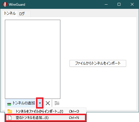 トンネルの追加 の から を選択する。
