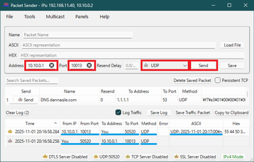 5-3-2. UDP の疎通を確認する。(Windows の Packet Sender)