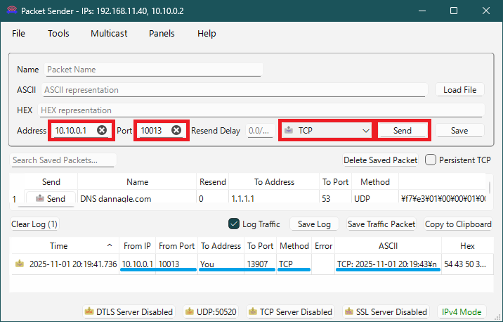 5-5-2. TCP の疎通を確認する。(Windows の Packet Sender)