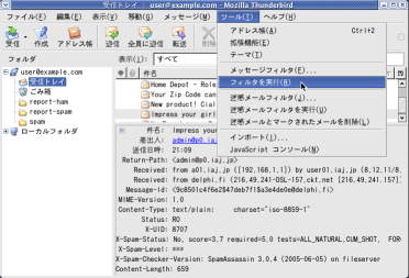 実行の結果、フォルダ「spam」にメッセージが移動されました。