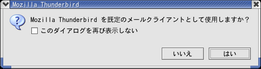 $ wget http://ftp.mozilla.org/pub/mozilla.org/thunderbird/releases/1.0.6/linux-i686/ja-JP/thunderbird-1.0.6.tar.gz2. Thunderbird を実行 (インストーラはありません)