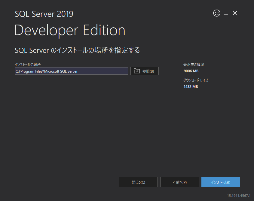 Microsoft SQL Server 2019 Developer Edition のインストール